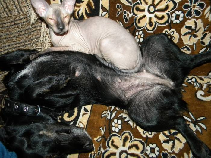 | Quote (Ксюша) мой личный телохранитель и обогреватель Как здорово!!! Сфинкус всегда найдет лохматенькую грелку и все сделает для того, чтобы подружиться с ней
