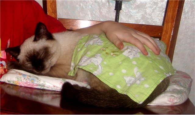 | Растет он в ласке и заботе. Пока я долго на работе, Дочь заботится о нем, Как о "пупсике" своем!(Пупсик-второе имя кота)